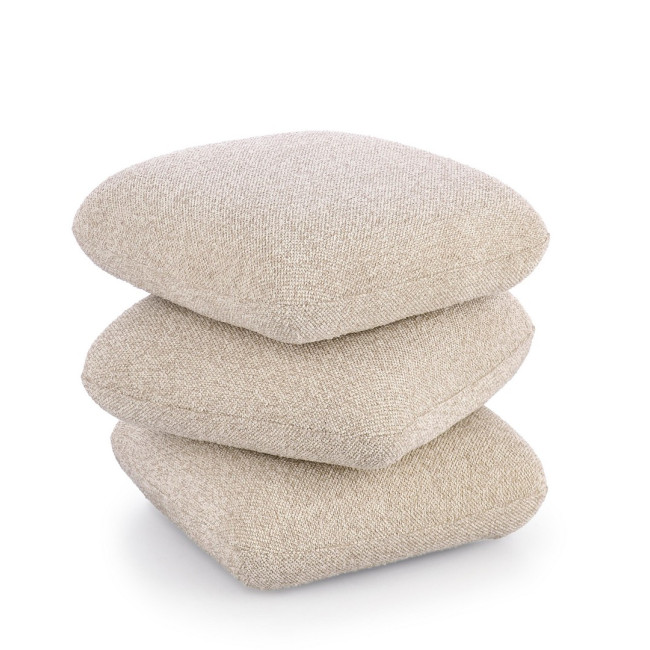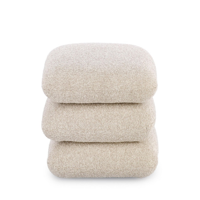 Pouf Antara Beige di Bizzotto: struttura in legno di eucalipto e rivestimento in morbido poliestere effetto bouclé, l’elemento perfetto per donare calore e stile accogliente al tuo ambiente.