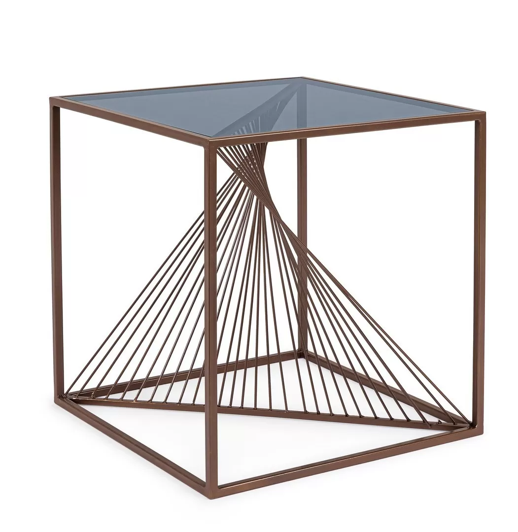 A coronare questa struttura, il piano in vetro trasparente amplifica la leggerezza del design, permettendo alla complessità della spirale sottostante di essere protagonista e creando un gioco di riflessi e trasparenze che arricchisce la composizione visiva.
