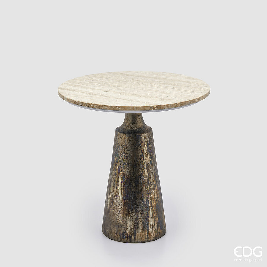 Il Tavolo Travertino Rotondo D60 cm di EDG è un elegante tavolino decorativo dal carattere naturale e sofisticato, pensato per arricchire con stile gli spazi living e di design contemporaneo.