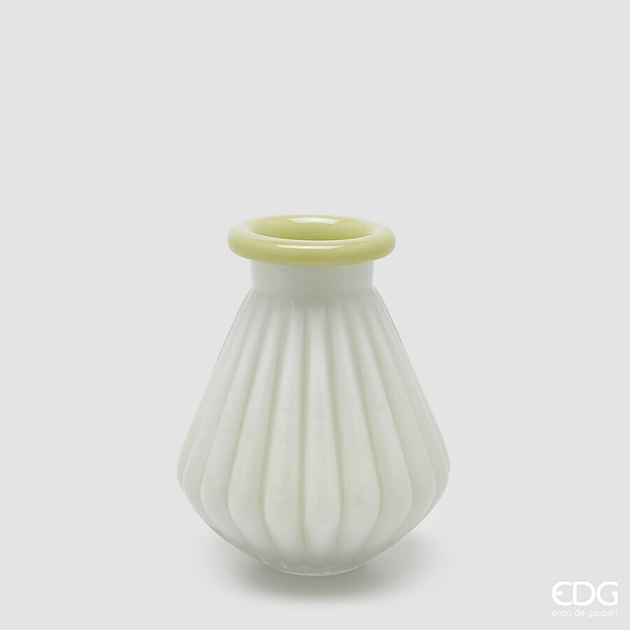 Il vaso Righe con Bordo firmato EDG Enzo De Gasperi è un complemento decorativo in vetro dal design contemporaneo ed elegante, pensato per valorizzare ambienti residenziali e spazi professionali con un elemento di forte impatto visivo. La lavorazione a scanalature verticali crea un raffinato effetto tridimensionale che esalta la luce e dona profondità alla superficie.