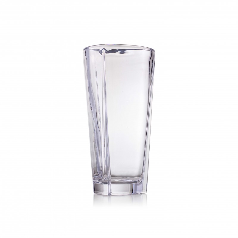 Realizzato in vetro trasparente, il vaso presenta una finitura lucida e traslucida che permette alla luce di passare attraverso, creando un effetto luminoso e accattivante. Il design semplice e lineare del vaso si adatta facilmente a qualsiasi stile di arredamento, dalla classica eleganza al moderno minimalismo.